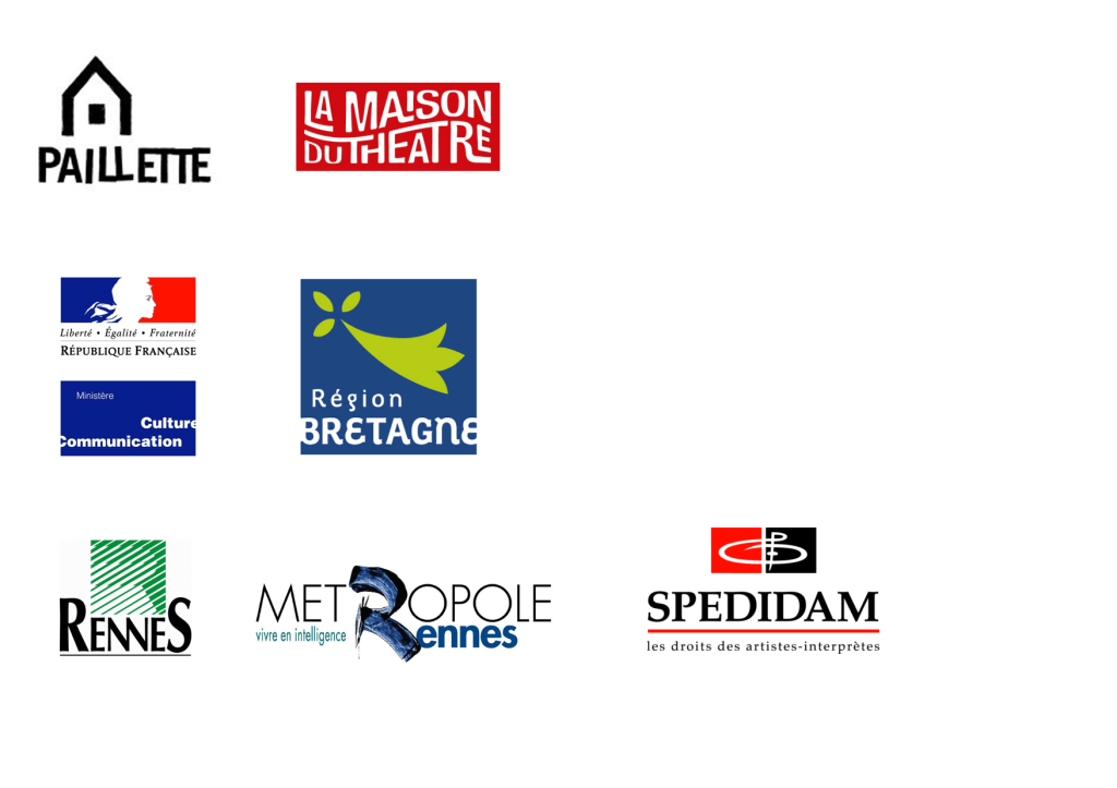 Soutien Aide à la production du Ministère de la Culture – DRAC de Bretagne, la Région Bretagne, la Ville de Rennes, la Spedidam, Spectacle Vivant en Bretagne